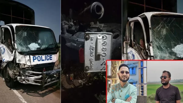 সিলেট, ০৬ এপ্রিল ২০২৩ইং ২০২৩ইং (দেশপ্রেম রিপোর্ট): সিলেটে পুলিশের পিকআপ, ট্রাক ও মোটরসাইকেলের ত্রিমুখী সংঘর্ষে প্রাণ হারিয়েছেন দুই মোটরসাইকেল আরোহী। এ ঘটনায় মোটসাইকেলের অপর এক আরোহীসহ ১০ পুলিশ সদস্য আহত হয়েছেন। বুধবার রাত ১০টার দিকে সিলেট-কোম্পানীগঞ্জ সড়কের গোয়াইনঘাট থানাধীন মিত্রিমহল এলাকায় এ ঘটনা ঘটে। নিহতরা হলেন, মোটরসাইকেল আরোহী পুলক বিস্তারিত পড়ুন
