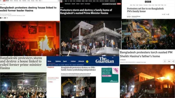 ঢাকা,০৬ ফেব্রুয়ারী ২০২৫ইং (দৈনিক দেশপ্রেম রিপোর্ট): গুঁড়িয়ে দেওয়া হয়েছে রাজধানীর ধানমন্ডির ৩২ নম্বরে অবস্থিত শেখ মুজিবুর রহমানের বাড়ি। এই সংবাদ দেশের সংবাদমাধ্যমের গণ্ডি পেরিয়ে প্রাকাশিত হয়েছে বিশ্বগণমাধ্যমেও। যুক্তরাজ্যের বিবিসি, রয়টার্স, দ্য গার্ডিয়ান; তুরস্কের আনাদোলু এজেন্সি ও টিআরটি ওয়ার্ল্ড, সৌদি আরবের আরব নিউজ, যুক্তরাষ্ট্রের সিএনএন, এবিসি নিউজ ও এপিসহ বিশ্বের শীর্ষস্থানীয় বিস্তারিত পড়ুন