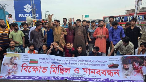 আশুলিয়া-সাভার, ৩০ আগষ্ট ২০২৫ইং (দৈনিক দেশপ্রেম রিপোর্ট): ডাকসুর সাবেক ভিপি ও গণঅধিকার পরিষদের সভাপতি নুরুল হক নুরের ওপর হামলার প্রতিবাদে আশুলিয়ায় মহাসড়ক অবরোধ করে বিক্ষোভ ও মিছিল করেছেন ঢাকা জেলা উত্তর গণ অধিকার পরিষদের নেতাকর্মীরা। আজ শনিবার (৩০ আগস্ট) বিকালে আশুলিয়ার বাইপাইল এলাকার নবীনগর চন্দ্রা মহাসড়কে ঢাকা জেলা উত্তরের বিস্তারিত পড়ুন
