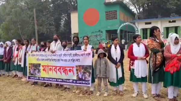 সুলাইমান মুন্সী-শ্রীনগর (মুন্সিগঞ্জ),০১ জানুয়ারী ২০২৫ইং (দেশপ্রেম রিপোর্ট): শ্রীনগরে মদনখালী উচ্চ বিদ্যালয়ের এডহক কমিটি নিয়ে দ্বন্দ্বে প্রধান শিক্ষককে মারধরের প্রতিবাদে বিদ্যালয়ের ছাত্র-ছাত্রীদের মানববন্ধন ও শিক্ষকদের কর্মবিরতি পালনের ঘোষনা দেয়া হয়েছে। ১জানুয়ারী বুধবার বেলা ১১টায় শ্রীনগর উপজেলার মদনখালী উচ্চ বিদ্যালয়ের খেলার মাঠে বিদ্যালয়ের আয়োজনে ছাত্র-ছাত্রীরা এ মানববন্ধন করে এবং দোষীদের শান্তি দাবি বিস্তারিত পড়ুন