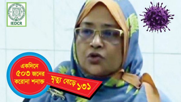 হেলথ ডেস্ক, ২৪ এপ্রিল ২০২০ইং (দেশপ্রেম রিপোর্ট): চীনের উহান থেকে ছড়িয়ে পড়া প্রাণঘাতী করোনাভাইরাসে বাংলাদেশে গত ২৪ ঘণ্টায় কেড়ে নিয়েছে আরও চারজনের প্রাণ। এ নিয়ে সংক্রমণে মারা গেলেন মোট ১৩১ জন। নতুন করে আক্রান্ত ব্যক্তি শনাক্ত হয়েছেন ৫০৩ জন। এই নিয়ে মোট আক্রান্তের সংখ্যা গিয়ে দাঁড়ালো চার হাজার ৬৮৯ জনে। বিস্তারিত পড়ুন