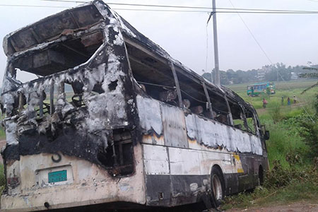 ০৩ জুন ২০১৯ইং (দেশপ্রেম রিপোর্ট): ঢাকা-আরিচা মহাসড়কের মানিকগঞ্জের নয়াডিঙ্গী এলাকায় ঢাকাগামী কে-লাইন পরিবহনের একটি এসি বাসে আগুনের ঘটনা ঘটেছে। এতে গাড়ির পুরো অংশই পুড়ে গেছে। তবে গাড়িতে থাকা যাত্রীরা দ্রুত নেমে যাওয়ায় কোন হতাহতের ঘটনা ঘটেনি। আজ সকালে এ ঘটনা ঘটে। পরে ফায়ার সার্ভিসের কর্মীরা ঘটনাস্থলে পৌছে আগুন নেভায়। এসময় বিস্তারিত পড়ুন