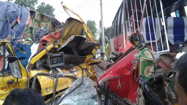 ০১ জুন ২০১৯ইং (দেশপ্রেম রিপোর্ট): ফরিদপুরে বাসের সঙ্গে ট্রাকের মুখোমুখি সংঘর্ষে ট্রাক চালকসহ দুইজন নিহত হয়েছেন। আহত হয়েছেন আরও দুইজন। আহতদের ফরিদপুর মেডিকেল কলেজ হাসপাতালে ভর্তি করা হয়েছে। আজ শনিবার সকালে ফরিদপুরের শহরতলীর পূর্বগঙ্গাবর্দী নামক স্থানে ঢাকা-খুলনা মহাসড়কে এই দুর্ঘটনা ঘটে। ফরিদপুর ফায়ার সার্ভিসের সিনিয়র স্টেশন অফিসার মো. নুরুল আলম বিস্তারিত পড়ুন